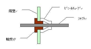 外部との隔壁の部分に真鍮製の軸受けが有りこの軸受け部分が3mmほど外側に突き出ています。この突き出た部分に少しきつい目のビニールチューブを被せて水の進入を防ぐというものです。ビニールチューブできつく締め付けているため回転するのに抵抗が有り、暫く回転を続けると熱ダレでチューブがフニャフニャになって防水効果が薄れます。キットの防水対策に少し工夫しました。
