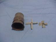 先ずはAのセールをFRPで作り直す事です。元のセールを雄型にして前回成功した紙粘土工法で雌型を作ります。今回はポリエステルを使わずにエポキシ樹脂を使用。エポキシは臭くないし肉厚が出るので使いやすいです。写真は積層が終わり型抜きした所。多少の凸凹はポリパテで仕上げます。 @のバラストタンクの装備に入ります。キットのオプションで燃料タンクを使った180ccのタンクと電動ポンプ。元はスイッチをサーボで動かす仕組みでしたがスペース的に余裕がないのでサンワの小型アンプを制御に使います(手前の黒い物)。説明書によるとタンク満水で15mm喫水が下がるらしいので、現在喫水は甲板ひたひたですから満水で完全に潜ってしまう事になります。再度喫水の調整が必要ですね。只今船内のレイアウトをすべて変更するためバラバラの状態です。 改装Aの艦橋部分が出来上がりました。何も変わりがないように見えますが上部に穴を開け空気が溜まって浮力が付いてしまうのを押さえます。今回潜望鏡等は省きアンテナとシュノーケルのみのシンプルな作りとしました。砲塔は紙粘土を雌型にたこやきの様にエポキシを流し込み作製。 左がハウジング。ベンチュリ形状を取りたかったので自作を考えましたがホームセンターでトユの継ぎ手を発見。開口部を削るだけで上手く真円の物が出来ました。中央は整流板(ステーターベーン)で右はファン(インペラ)。共にFRPで自作しましたが大変苦労した所です。この部分だけの製作方法を近くアップする予定です。 右が前回使用のダクテッドファン。左が今回製作の物。ダイヤ(直径)は小さく、翼面積は大きく、ピッチは緩やかにという方向で作ってみました。比較するとピッチの差が歴然。